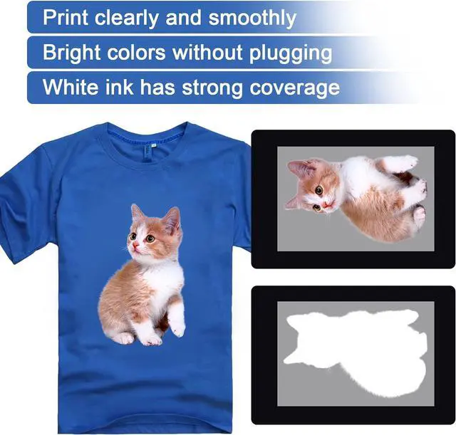 Ink capacity: 2*100 ml white ink, black and color ink 100 ml eac,Good ink fluency, no line breakage and no head blockage.