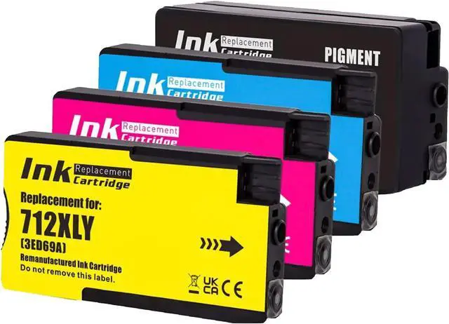 Remanufactured Ink Cartridges Replacement: For 712 712XL ink cartridges combo pack(3ED67A 3ED68A 3ED69A 3ED70A)