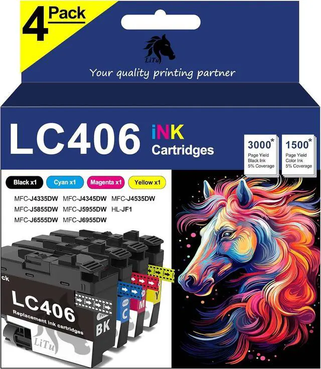 Guaranteed to work with printers: LC406 ink cartridges are used for Brother INK_vestment Tank multifunction color inkjet printer models MFC-J4335DW, MFC-J4335DW XL, MFC-J4345DW XL, MFC-J4535DW, MFC-J4535DW XL, MFC-J5855DW, MFC-J5955DW, MFC-J6555DW, MFC-J6955DW, HL-JF1.