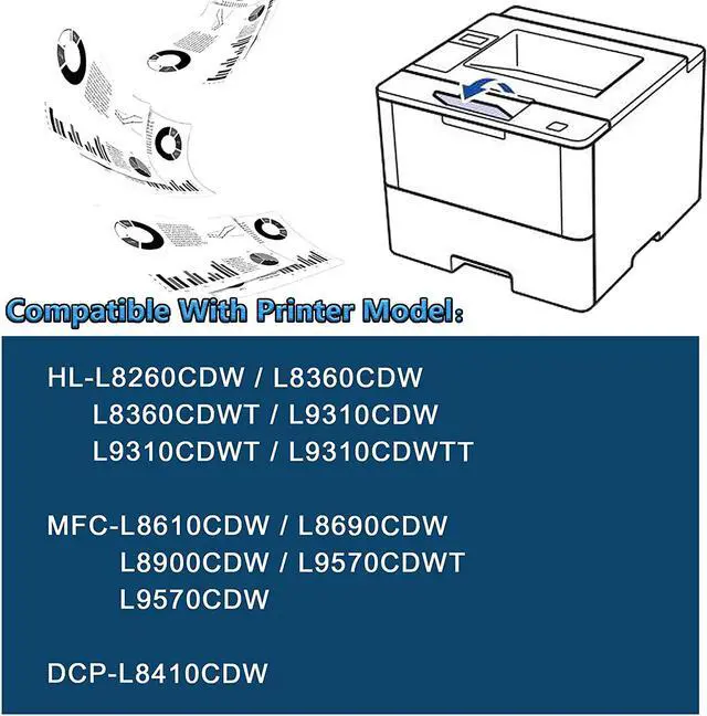 -Compatible with Printer Models: HL-L8260CDW L8360CDW L8360CDWT L9310CDW L9310CDWT L9310CDWTT DCP-L8410CDW MFC-L8610CDW L8690CDW L8900CDW L9570CDWT L9570CDW Printer. -The page yield of each color toner is up to 5000 pages(Based on up to 5% coverage).