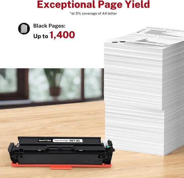 With Chip Version: Each 067 black toner cartridge is equipped with an advanced chip, enabling seamless printer recognition. Enjoy effortless installation and quick, reliable recognition.