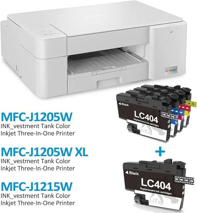 Guaranteed to work with printers: LC404 ink cartridges are for use with Brother INKvestment Tank multi-function color inkjet printer models MFC-J1205W, MFC-J1205W XL and MFC-J1215W.