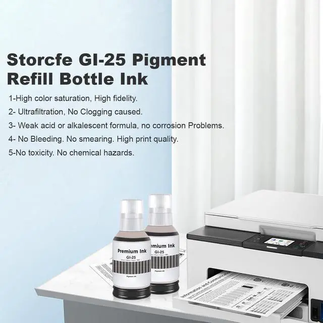 Only Applicable Printer Model: Canon MAXIFY GX2020 Printer Canon MAXIFY GX1020 Printer How to refill? 1--- Please find the ink bottle to replenish ink first, the color of the top cover of the ink bottle is consistent with that of the ink. 2---Please directly open the bottle cap and inject ink without squeezing the bottle by hand. It stops automatically when the ink is full.