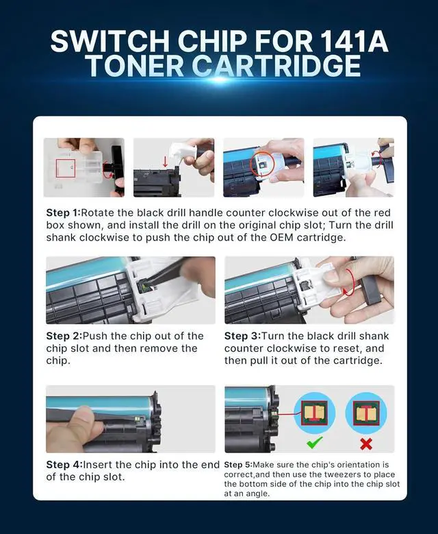 No Chip: This Xesdayu 141A toner cartridges do not have chips, and need to transfer chip from original 141X 141A toner.