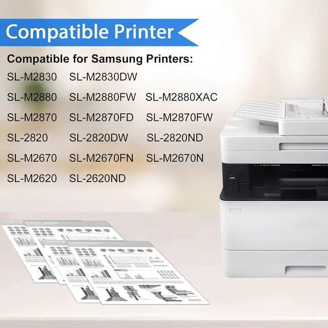 Compatible for Samsung Printers:Xpress SL-M2620,Xpress SL-2620DN,Xpress SL-2820DW,Xpress SL-2820,Xpress SL-2830ND,Xpress M2670N,Xpress M2670FN,Xpress M2870FW,Xpress M2870FD,Xpress M2880FW