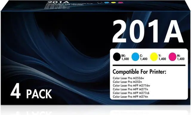 Page Yield: Up to 1,500 Pages per 201A CF400A Black Toner Cartridges & 1,400 Pages per CF401A CF402A CF403A Cyan Yellow Magenta Toner Cartridges (Letter/A4, at 5% Coverage)