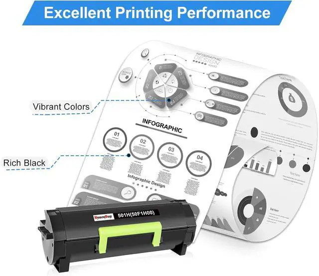 Serious Inspection All of HenceBuy 50F1H00 Toner Cartridge must be tested seriously.Ensure excellent toner quality will not clog the print head, print clear and bright picture smoothly.