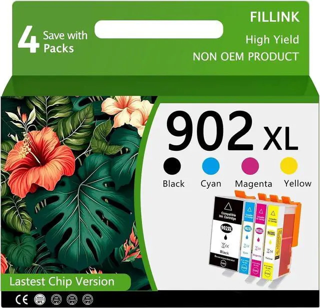 Package Included: For HP 902XL 902 Ink Cartridges (1 x 902XL Black, 1 x 902XL Cyan, 1 x 902XL Magenta, 1 x 902XL Yellow ), 1 x User Guide