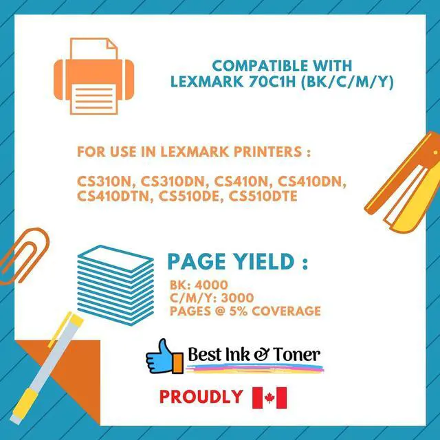Best Remanufactured Toner for Lexmark 70C1H(70C1HK0 70C1HC0 70C1HM0 70C1HY0) Combo High Yield BK/C/M/Y, for CS310N CS310dn CS410N CS410dn CS410dtn CS510de CS510dte (Black/Cyan/Magenta/Yellow)
