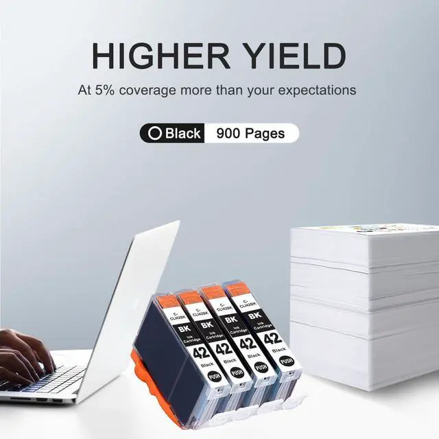 High Page Yield: 900 pages per CLI-42 Black ink cartridge at 5% coverage of A4 paper.