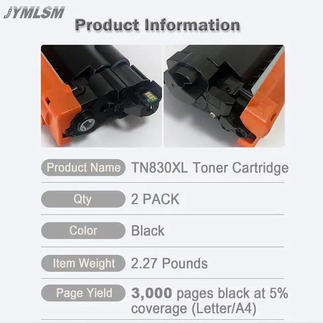 Page Yield: 3,000 Pages Per TN830XL TN830 Toner Cartridge(at 5% coverage)