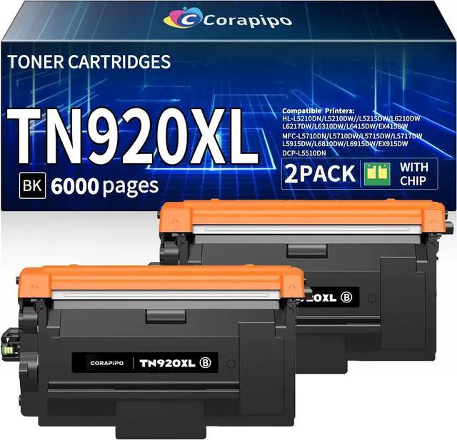 Corapipo TN920XL toner cartridge Compatible for Brother TN920 TN920XL TN920UXXL features a highly intelligent chip,ensures precise printing,and refind powders provides excellent print quality