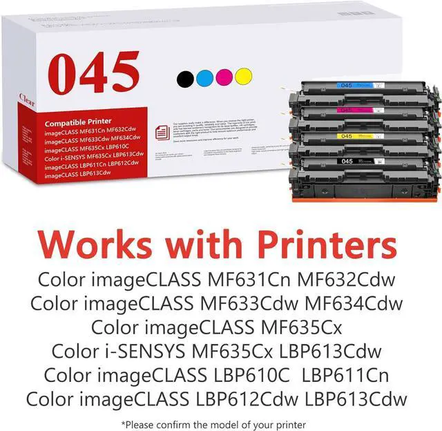 Package with 4 Pack 045 Toner Cartridges (1 X 045 Black, 1 X 045 Cyan, 1 X 045 Magenta , 1 X 045 Yellow)