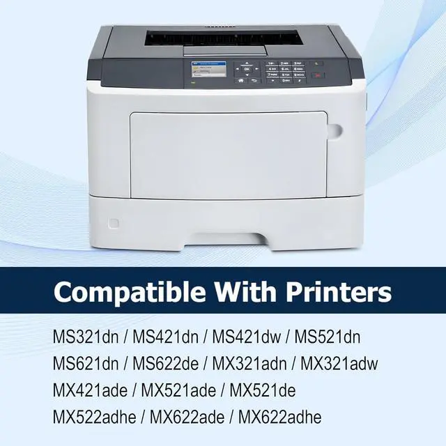 Compatible Printer:MS321dn, MS421dn, MS421dw, MS521dn, MS621dn, MS622de, MX321adn, MX321adw, MX421ade, MX521de, MX521ade, MX522adhe, MX622ade, MX622adhe laser printer