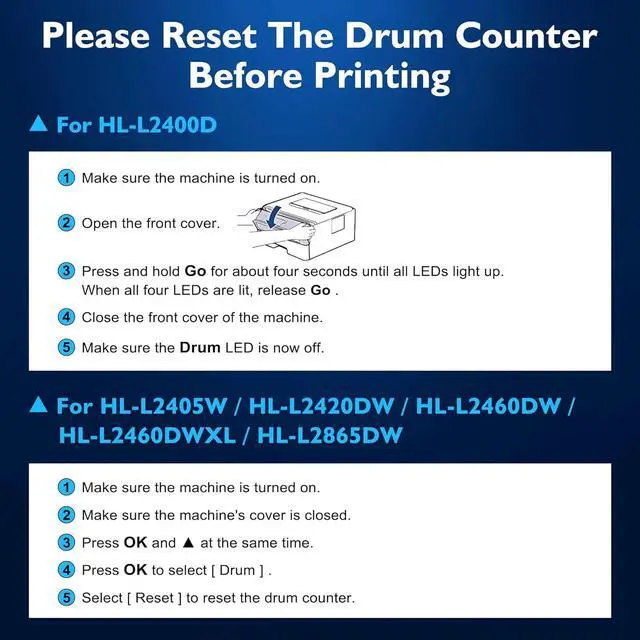 WARM TIPS: Please reset the Drum Unit Counter before printing!