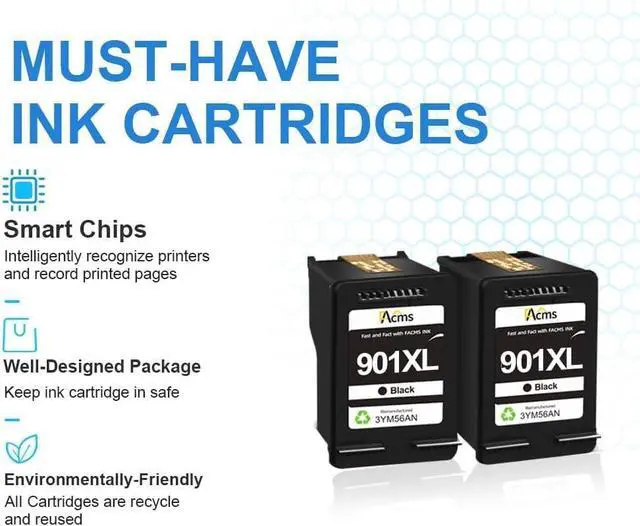 Printout Performance: FACMS remanufactured replacement for hp ink 901xl black provides your printouts with clear and sharp text, vibrant colors.Help with recording the bright moment of your working, study and life.