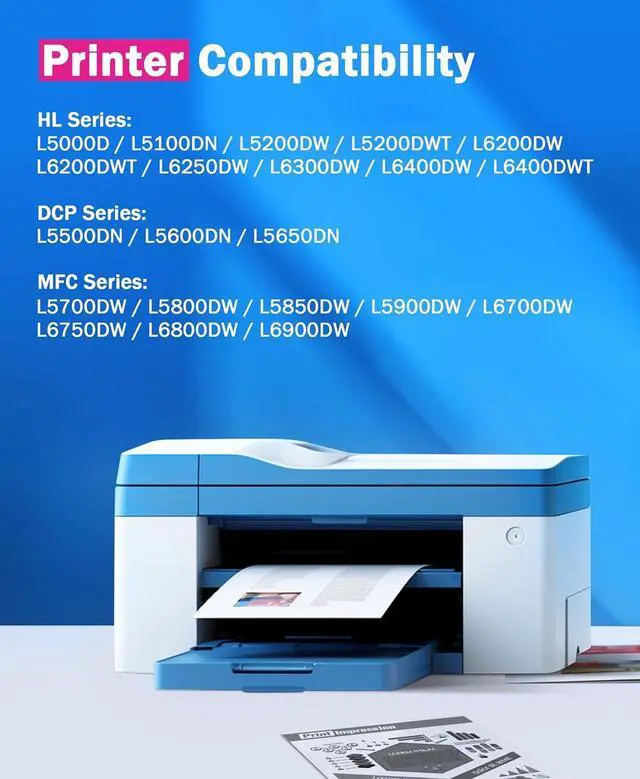 Compatible Printer: Brother HL-L5000D DCP-L5500DN DCP-L5600DN DCP-L5650DN HL-L6200DW HL-L6200DWT HL-L6250DW HL-L6300DW HL-L6400DW HL-L6400DWT HL-L5100DN HL-L5200DW HL-L5200DWT MFC-L6750DW MFC-L6900DW MFC-L5700DW MFC-L5850DW MFC-L5800DW MFC-L5900DW MFC-L6700DW MFC-L6800DW Laser Printer