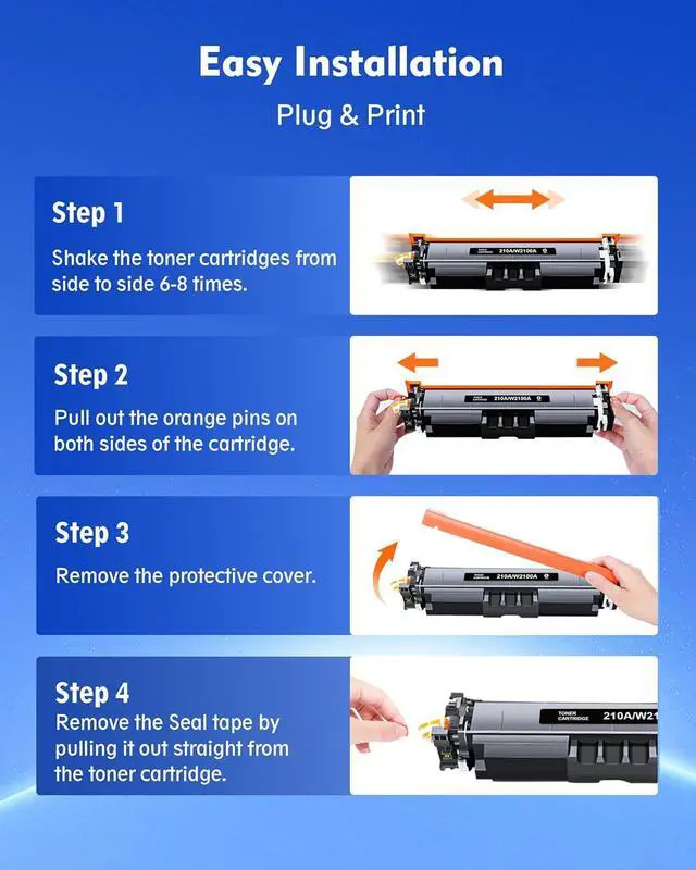 With Upgraded Chip: 210a 210x toner cartridges 2 pack is equipped with the latest chips for hassle-free printing experience. No need to remove and install old chip on this replacement for hp 210a toner cartridges