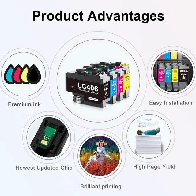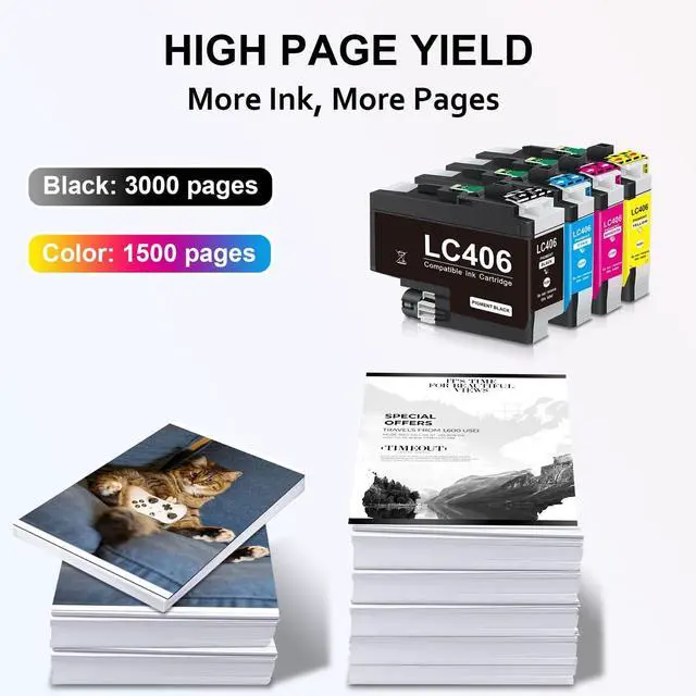 Page Yield: 3,000 Pages for lc406 Black,1,500 pages for lc406 Cyan/Yellow/Magenta at 5% coverage of A4 paper .