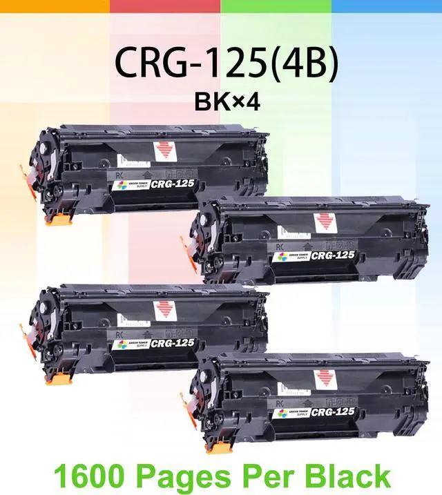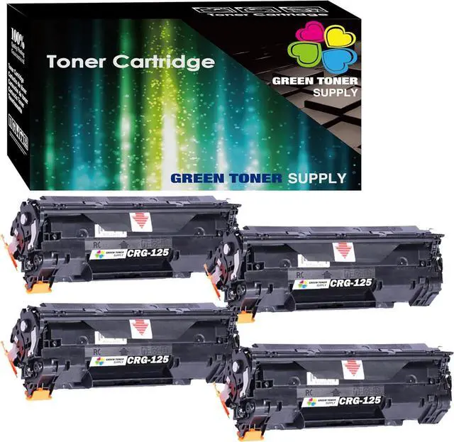 Package Including: (4 Pack, 4xBlack) Green Toner Supply Compatible 125 Toner Cartridge Replacement for Canon 125 Toner Cartridge