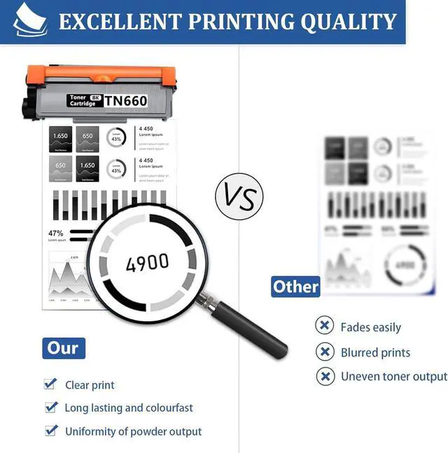 Our TN660 Toner Cartridge Replacement for Brother HL-L2300D HL-L2305W HL-L2315DW HL-L2320D HL-L2340DW HL-L2360DW HL-L2380DW MFC-L2680W MFC-L2685DW MFC-L2700DW MFC-L2705DW MFC-L2707DW MFC-L2720DW MFC-L2740DW DCP-L2520DW DCP-L2540DW Printer Toner