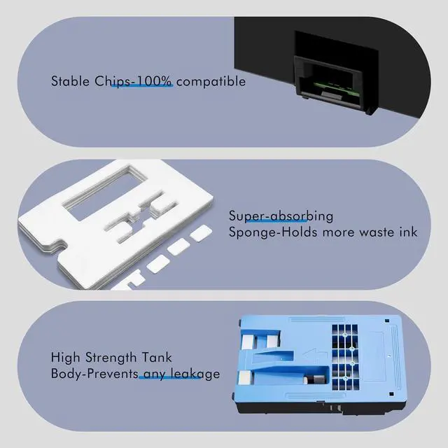 Upgraded chips: MC10 Ink Maintenance Box with chip high quality spongebuilt-in sponge pad can absorb waste ink well and prevent ink overflow.