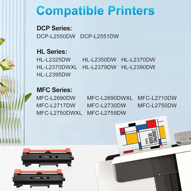 Printer Compatibility: Brother hl-l2325dw hl-l2350dw hl-l2395dw hl-l2390dw hl-l2370dw hl-l2370dwxl mfc-l2690dw mfc-l2717dw mfc-l2750dw mfc-l2750dwxl mfc-l2710dw mfc-l2730dw dcp-l2550dw brother printer toner tn-730/tn760