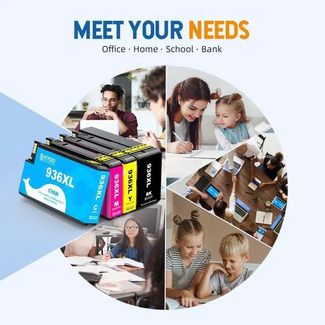 Package Content: 936 XL color combo pack Includes high-yield 936 XL black 936 XL yellow 936 XL cyan and 936 XL magenta ink cartridge for printing of documents and vibrant photos