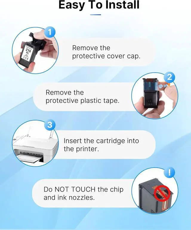 Easy to install: Black ink 210XL color ink 210XL with the latest smart chips are highly compatible with your printer, ensure the instant recognition. Easy installation steps allow you enjoy the convenience of printing.