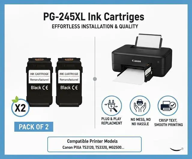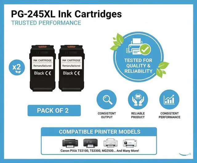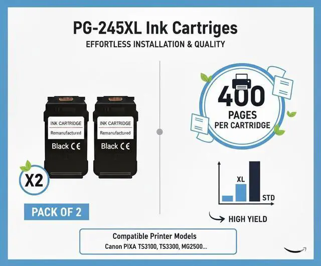 Each PG-245XL black ink cartridge delivers exceptional performance with more pages per cartridge.