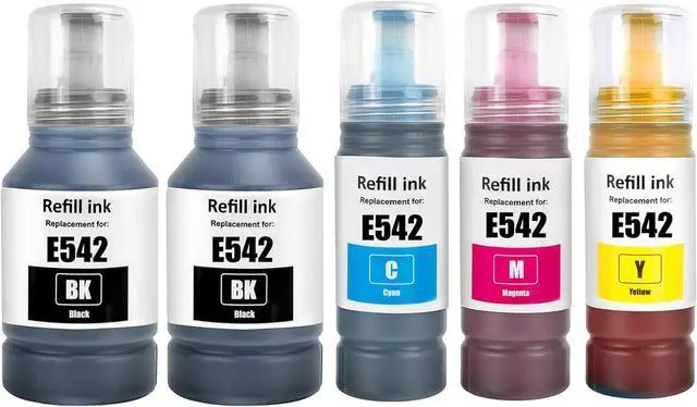 Package Contents Total 5 bottles of compatible refill ink 542 T542 Combo Pack (2 x T542 Pigment Black 1 x T542 Cyan1 x T542 Magenta1 x T542 Yellow). (NOT ORIGINAL).