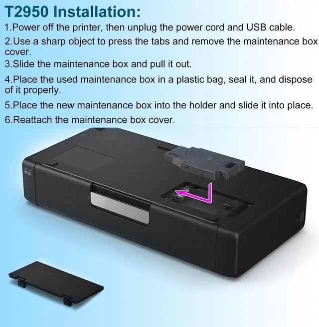 Non-OEM Product High-Quality T2950 Ink Maintenance Box: This maintenance box offers a reliable, cost-effective solution to keep your printer running smoothly. Designed to provide the same great performance as the original