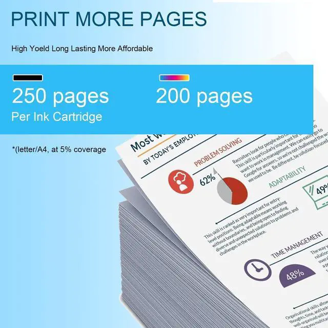 Page Yield: 250 Pages per Black 215 Ink Cartridge, 200 Pages per Color 215 Ink Cartridge (at 5% coverage Letter A4)