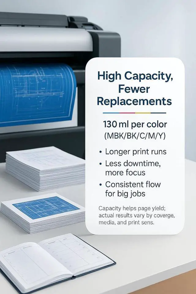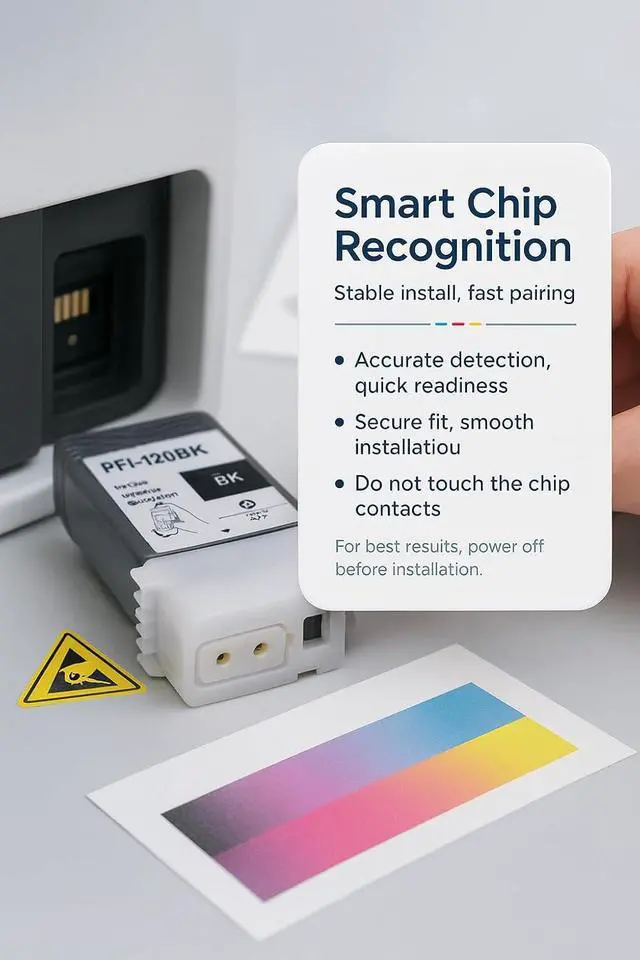 High Ink Volume: 130ML high-quality ink per PFI-120MBK PFI-120BK PFI-120C PFI-120M PFI-120Y ink tank