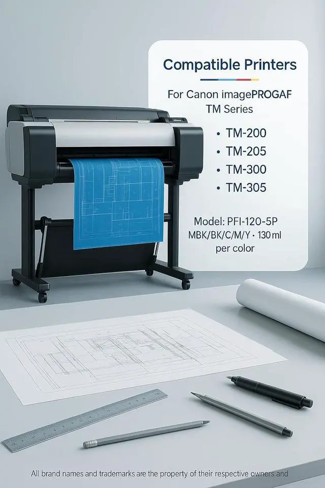 Compatible Printers: 100% Comaptible for Canon imagePROGRAF TM-200, TM-200 MFP L24ei, TM-205, TM-205 MFP L24ei, TM-300, TM-300 MFP L36ei, TM-300 MFP T36, TM-300 MFP T36 AiO, TM-305, TM-305 MFP L36ei, TM-305 MFP T36, TM-305 MFP T36 AiO series Large format printers