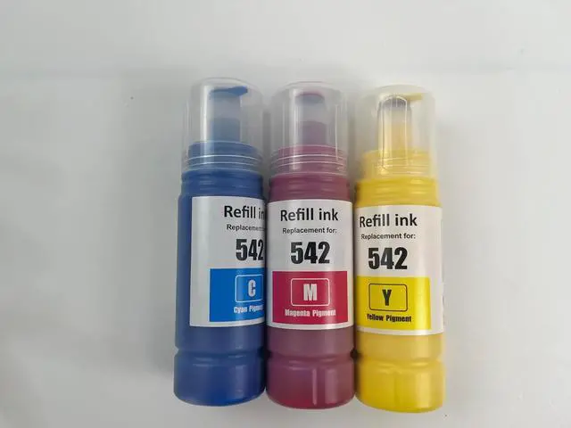 Package include: 3 x 542 Ink Refill Bottles (1 x Cyan 542 Ink Reill Bottle, 1 x Magenta 542 Ink Reill Bottle, 1 x Yellow 542 Ink Reill Bottle)