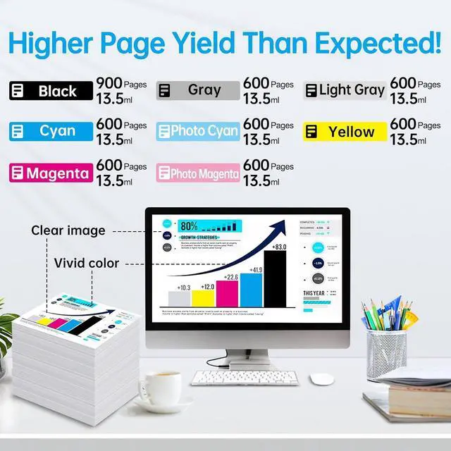 Print Effect: High-quality 65 ink can provide sharp text, rich black and vivid color with consistency, high saturation and high resolution.