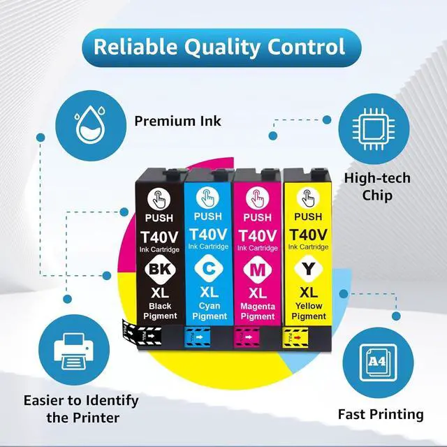 Remanufactured T40V Ink Cartridge Replacement for T40V120 T40V220 T40V320 T40V420 for SC-T2170 SC-T3170 SC-T3170M SC-T5170 SC-T5170M SC T2170 T3170 T3170M T5170 T5170M (4 Pack)