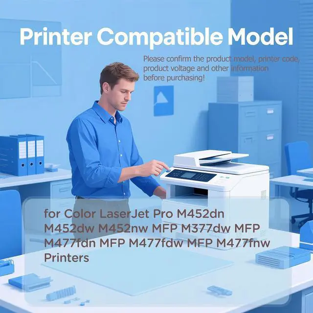 Check Compatibility Compatible with M452dn, M452dw, M452nw, MFP M377dw, MFP M477fdn, MFP M477fdw, and MFP M477fnw Printers. Please confirm your printer model to ensure a proper fit before purchasing