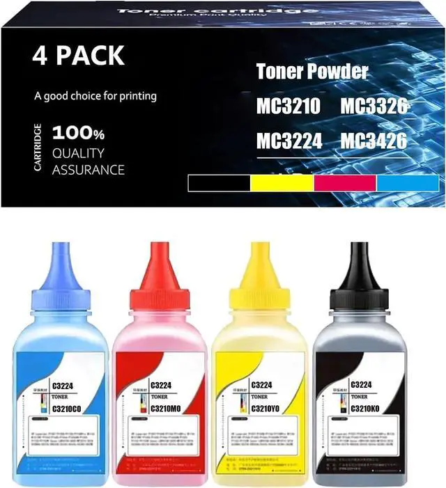 Package Include: 1x C3210K0 toner powder,1xC3210C0 toner powder,1xC3210M0 toner powder,1xC3210Y0 toner powder
