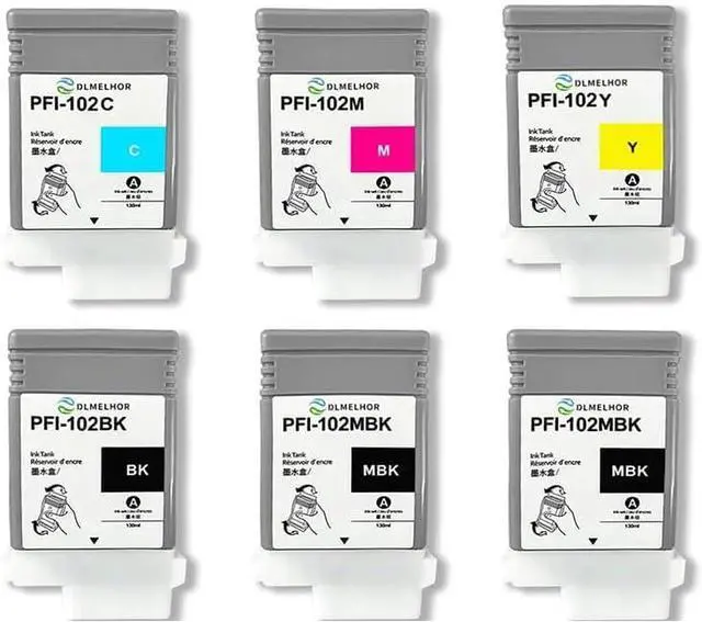 High Quality: PFI-102 Ink Tank 6 Pack can produce vivid true to life prints, not easy to fade, good fluency, bright colors, no clogging and doesn't hurt the printer.Match or Exceed Original Specification on color, PH, surface tension and viscosity. The color is much more accurate and brighter