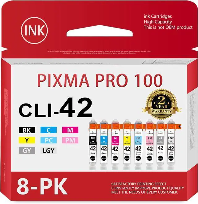 Package Contents: Compatible SANAIF Cli 42 Ink cartridge high capacity Black Grey Cyan Light Grey Photo Cyan Magenta Photo Magenta and Yellow 8-Pack includes(1 x Cli 42BK Black Ink , 1 x Cli 42C Cyan ink, 1 x Cli 42M Magenta ink, 1 x Cli 42Y Yellow ink, 1 x Cli 42PC Photo Cyan ink,1 x Cli 42PM Photo Magenta ink,1 x Cli 42GY Gray ink,1 x Cli 42LGY Light Gray ink,)