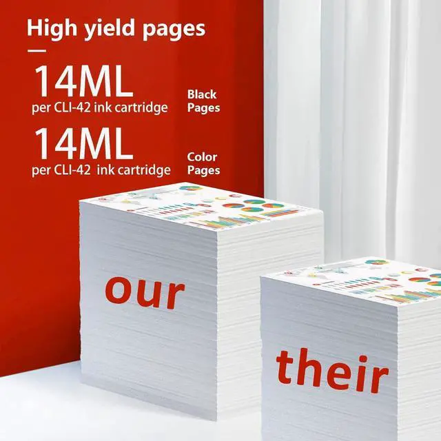 High Page Yield - Black 14ML per CLI-42 ink cartridge and color 14ML per CLI-42 ink cartridge at 5% coverage ISO/IEC 19752 (letter/A4)