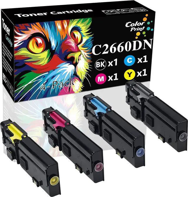 Package Contents: 4-Pack Compatible 2660 C2660DN Toner Cartridge (1x Black, 1x Cyan, 1x Magenta, 1x Yellow)