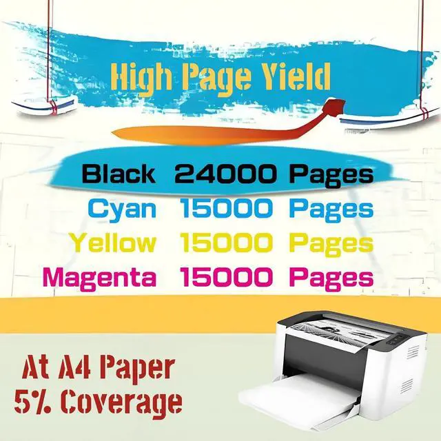 Page Yield: About 24000 pages per Black Toner Cartridge,15000 pages per Color Toner Cartridge (At 5% coverage of A4 paper)