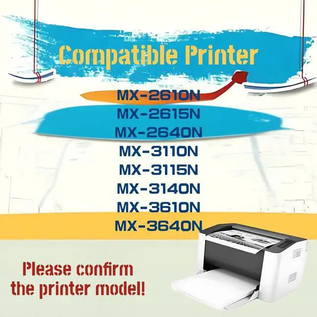 Compatible Printer Models: MX-36NT MX-36NTBA MX-36NTCA MX-36NTYA MX-36NTMA Toner Cartridge for Sharp MX-2610N MX-2615N MX-2640N MX-3110N MX-3115N MX-3140N MX-3610N MX-3640N printers