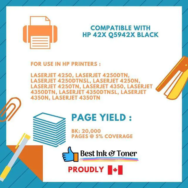 Best Toner Compatible Black Toner Cartridge for 42X Q5942X (High Capacity of 42A/Q5942A), for Laserjet 4250, Laserjet 4250dtn, Laserjet 4250dtnsl, Laserjet 4250n, Laserjet 4250tn