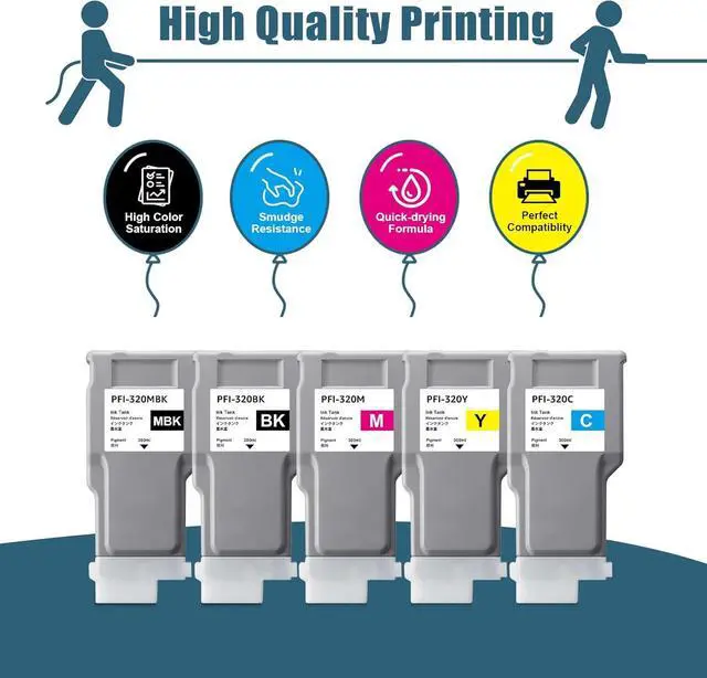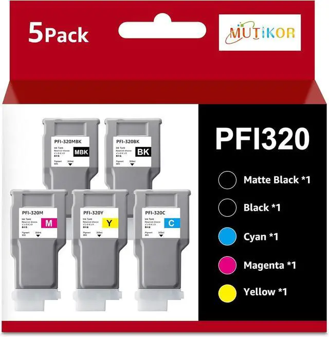 • Quantity Included: 5 Packs of PFI320 Ink Cartridge, 1 Matte Black, 1 Black, 1 Cyan, 1 Magenta, 1 Yellow.
