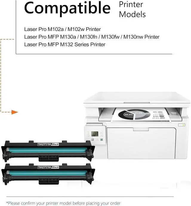 What's in the box: 2 new 19A Drum Unit CF219A 2-Pack Black Drum 19A Compatible Drum Unit (Toner Cartridge is Not Included)