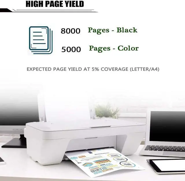 High Yield: At 5% coverage,black toner cartridge can print approximately 8000 pages,cyan,yellow,magenta toner cartridge can print approximately 5000 pages